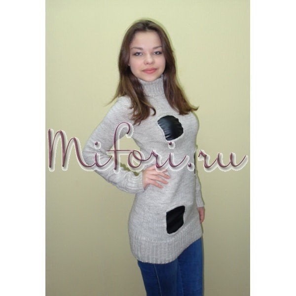 Платье-свитер с кожаными вставками.