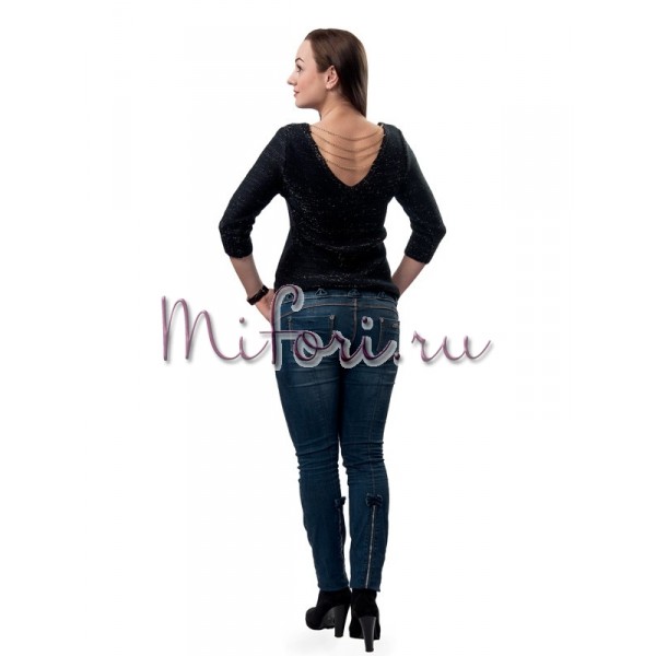 Оригинальный вязаный пуловер с рукавами 3/4 и V-образным вырезом. По спинке вырез декорирован цепочкой. Выполнен из пряжи приятной к телу и удобный.