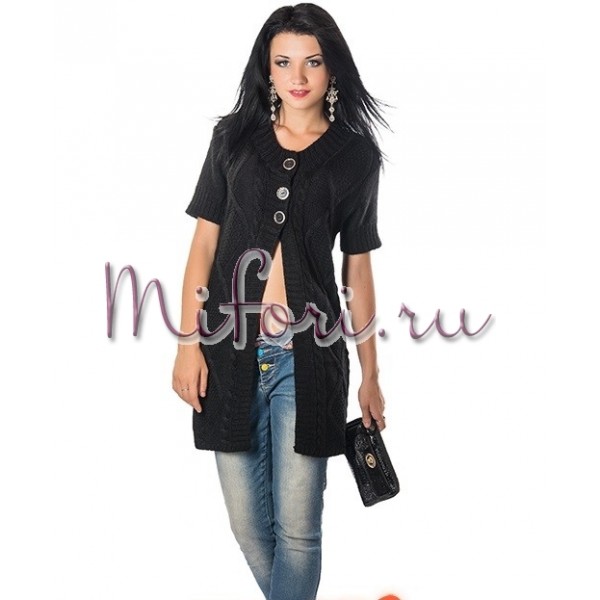 Вязаный кардиган на трех пуговицах с коротким рукавом. Изделие изготовлено из высококачественной турецкой пряжи "Марс".