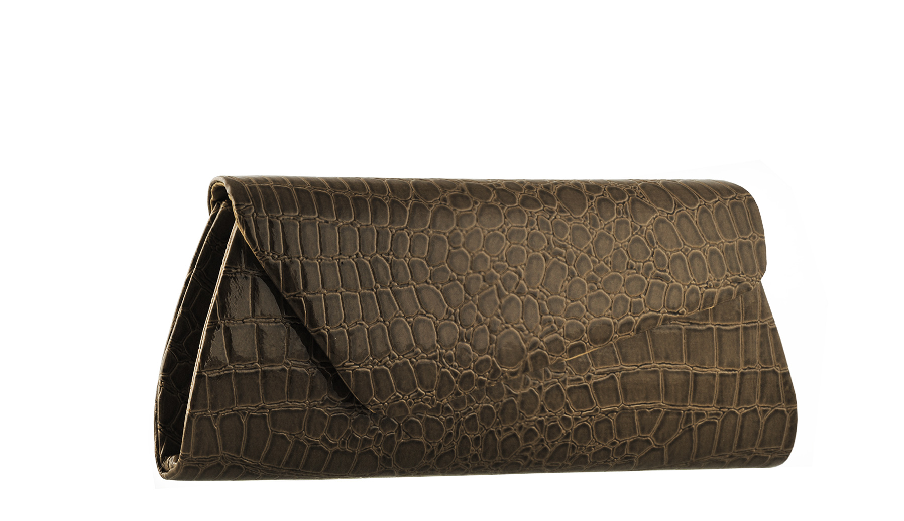 Клатч держится на магните. К нему прилагается цепочка. Атласный коричневый подклад.
