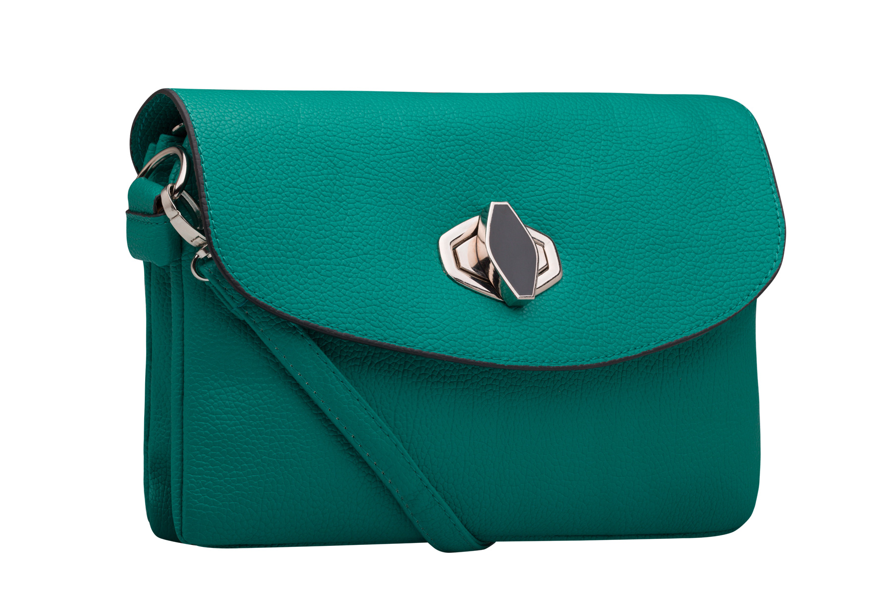 Закрывается на замок. Внутри два отделения на молниях. Внутри есть маленький кармашек на молнии и кармашек для мелочей. Сзади кармашек на молнии. Есть длинный ремешок и короткий на руку.