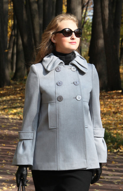 Стильное пальто с завышенной талией – хит этой осени. Изысканный цвет, безупречный фасон позволяют создать женственный модный образ. Двубортная застежка на пуговицы, оригинальный отложной воротник. По бокам – карманы с отделкой из той же ткани.