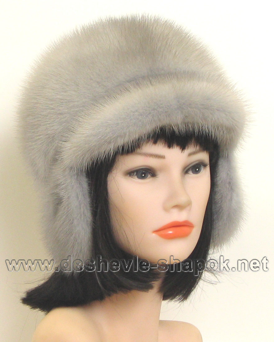 Модель Кнопка. Шапка норковая, цвет голубой.