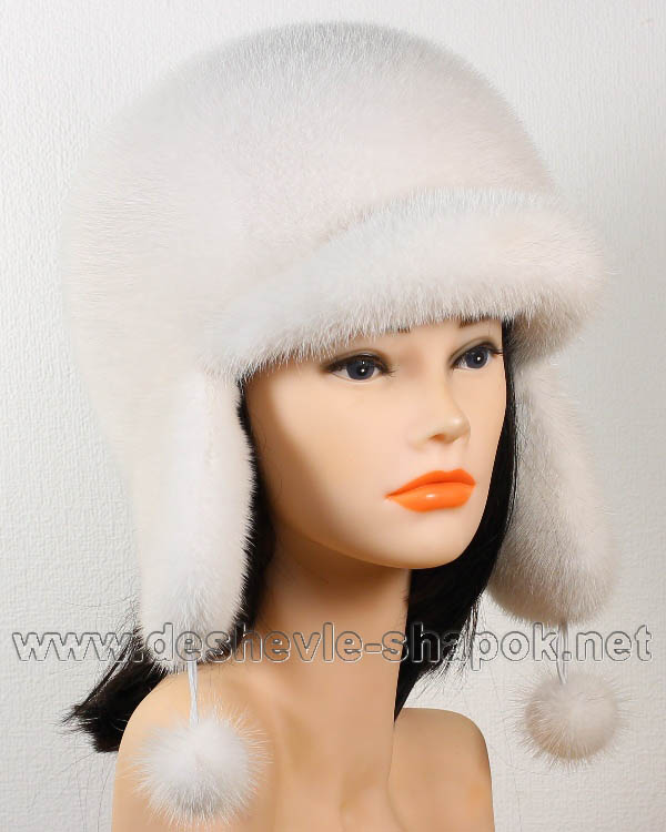 Модель Буденовка. Шапка-ушанка из натурального меха норки белого цвета. Изделие российского производства.