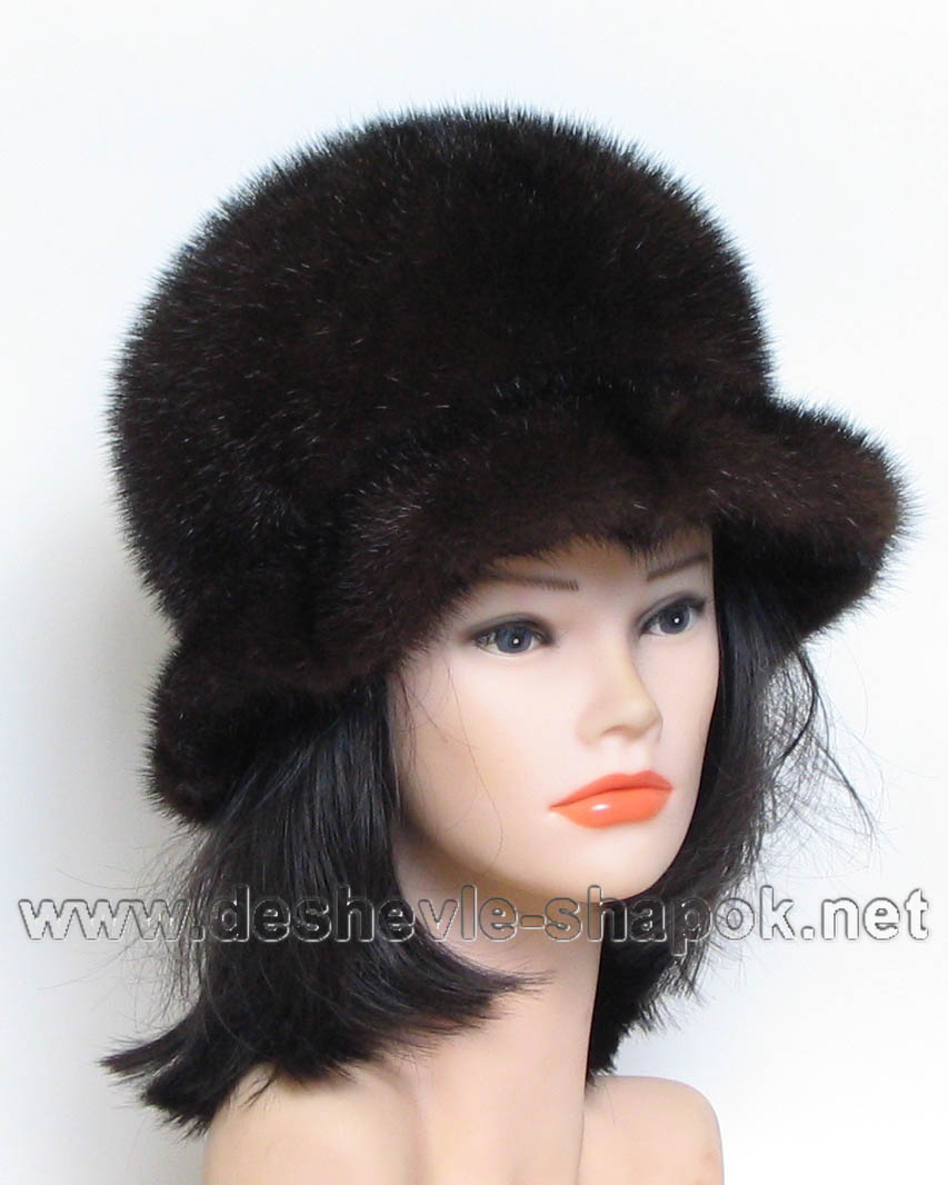 Модель Софи. Норковая шапка, капор, с полями направленными вниз, каркасный, полужёсткий. Цвет темно-коричневый.