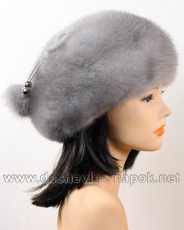 Берет из норки голубой. Шапка берет из натурального меха норки отечественного производства.