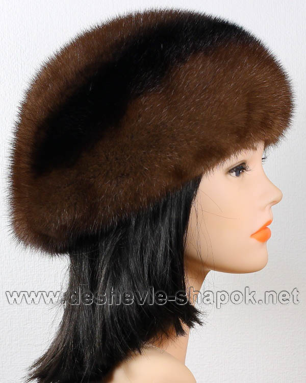 Берет Цвет орех деграде. Шапка берет из натурального меха норки отечественного производства.