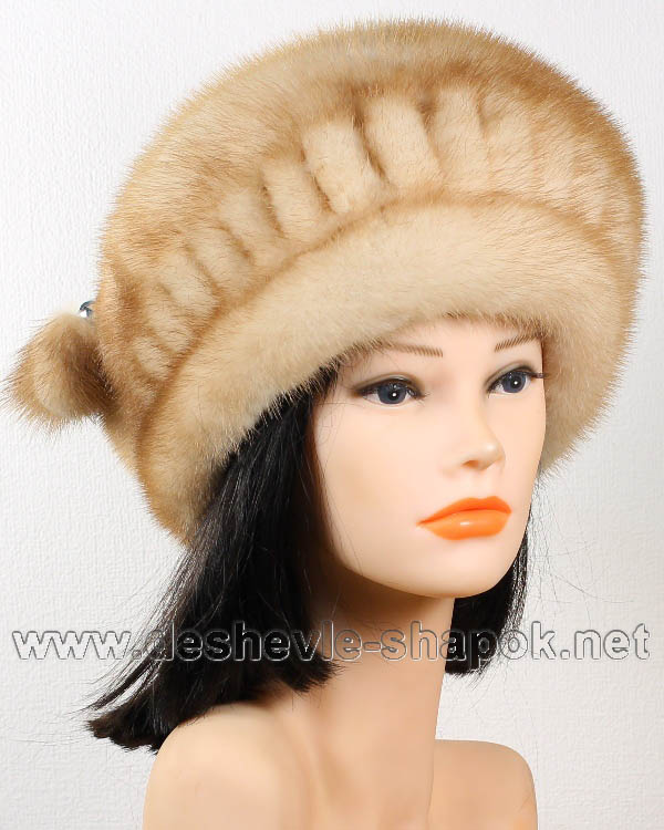 Джулия. Берет широкий из норки отечественного производства с перфорацией, цвет паломино.