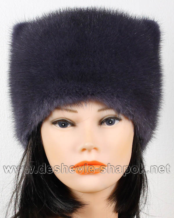 Киска, цвет аврора. Шапка из натурального меха норки, с хвостом, два ушка сверху.
