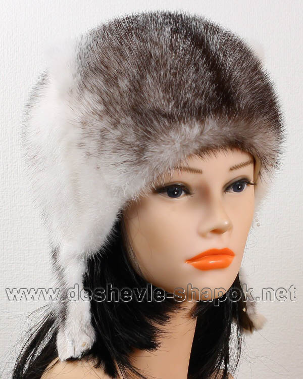 Киска Крестовка. Шапка из натурального меха норки, с хвостом, два ушка сверху.