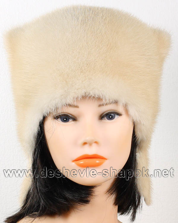 Киска Тигровая. Шапка из натурального меха норки, с хвостом, два ушка сверху.