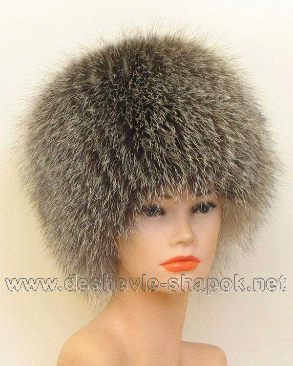 Барбара. Головной убор из песца на трикотажной основе, блюфрост, верх: кожаное донышко.