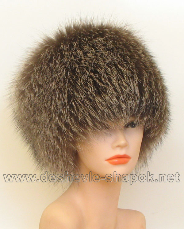 Барбара. Головной убор из песца на трикотажной основе, блюфрост, верх: кожаное донышко.