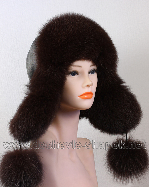 Женская шапка с ушами, с верхом из натуральной кожи и мехом песца. Размеры любые.
