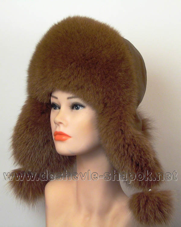 Женская шапка с ушами, с верхом из натуральной кожи и мехом песца. Размеры любые.