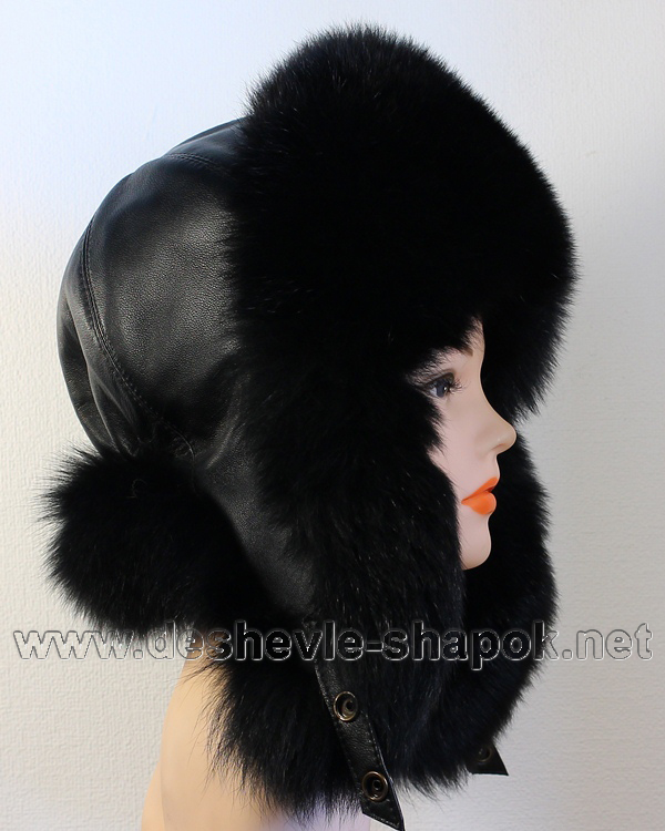 Женская шапка с ушами, с верхом из натуральной кожи и мехом песца. Размеры любые.