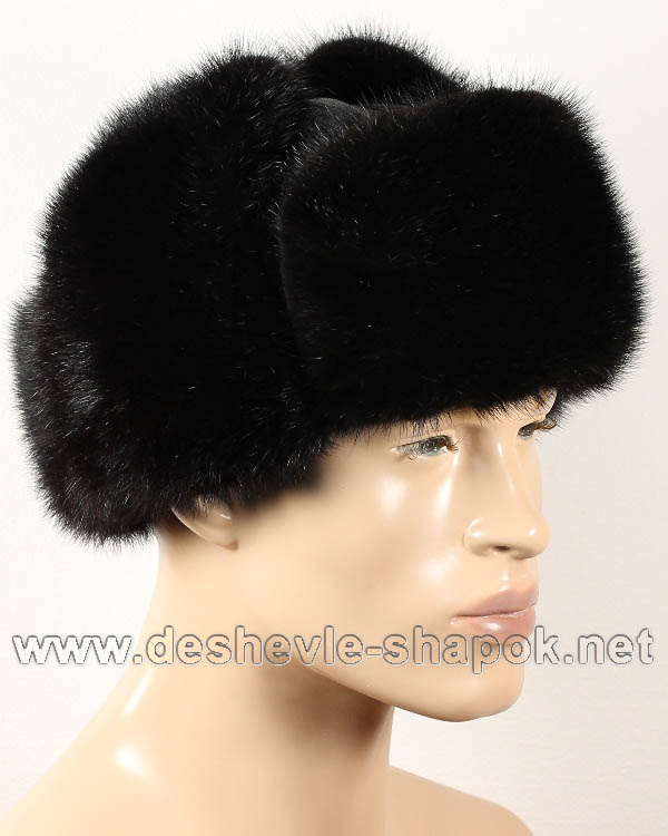Мужская ушанка норка выполнена из натурального меха, комбинированная с кожей. Цвет черный. Уши можно опустить или поднять. Производство Россия.