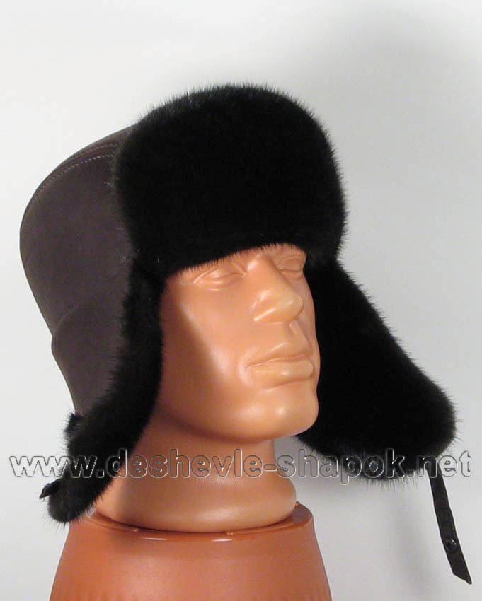 Мужская ушанка норка выполнена из натурального меха, комбинированная с кожей. Цвет черный. Уши можно опустить или поднять. Производство Россия.