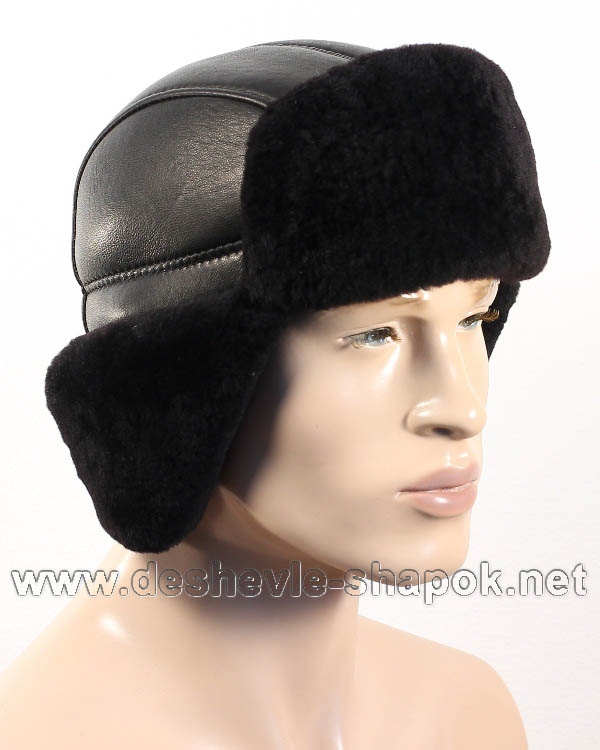 Шапка "Пилот-шлем". Овчина, натуральная кожа. Цвет: чёрный.