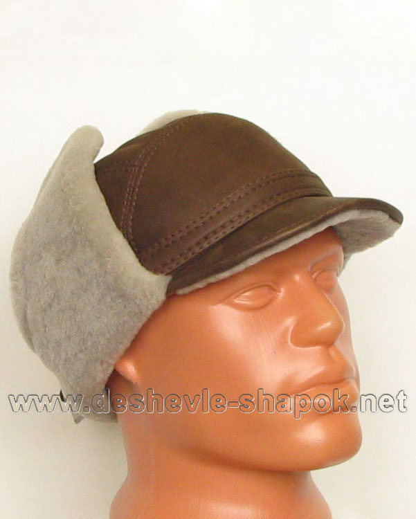 Шапка "Лидер". Овчина, натуральная кожа. Цвет: коричневый.