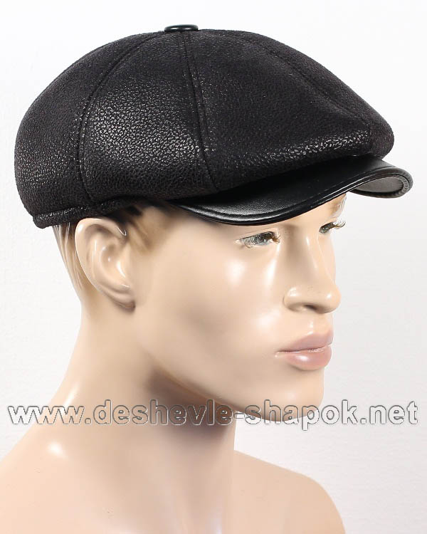 Кепка восьмиклинка. Кожа; подкладка — овчина. Цвет: чёрный.