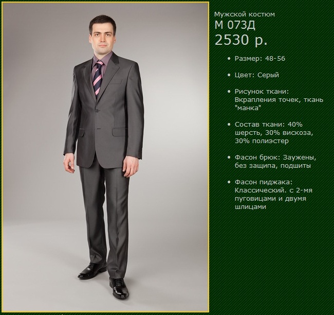 •Фасон пиджака: Классический. с 2-мя пуговицами и двумя шлицами
