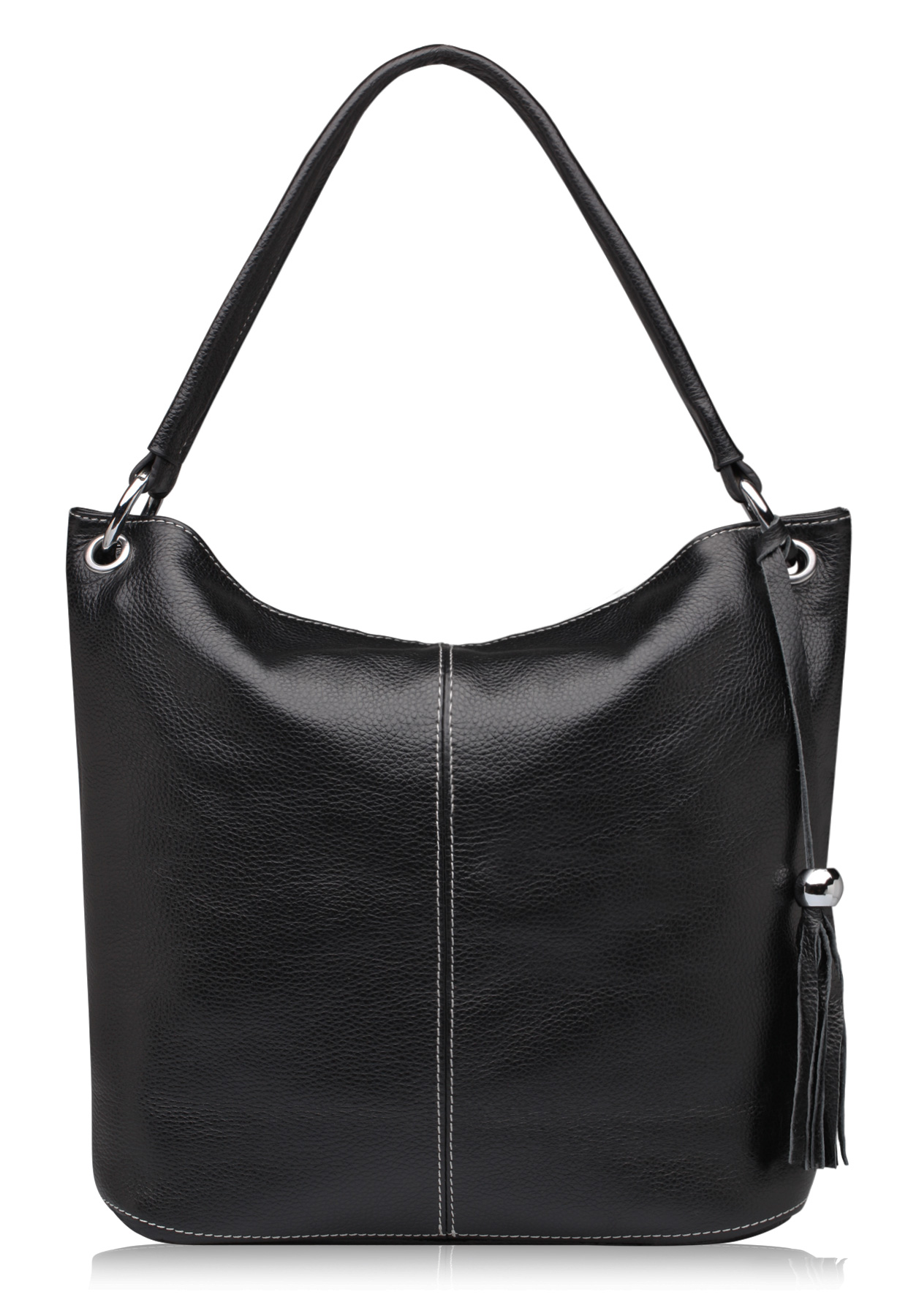Абсолютно универсальная сумка из натуральной кожи. Практичный размер и лаконичная форма делает эту сумку подходящей и к деловому костюму и к платью. Сумка не отягощена лишними деталями. Благодаря белой прострочке и качественной фурнитуре аксессуар выглядит дорого и оригинально. У сумки большая и длинная ручка, благодаря которой сумку можно носить даже на объемную верхнюю одежду. Подходит для формата A4.