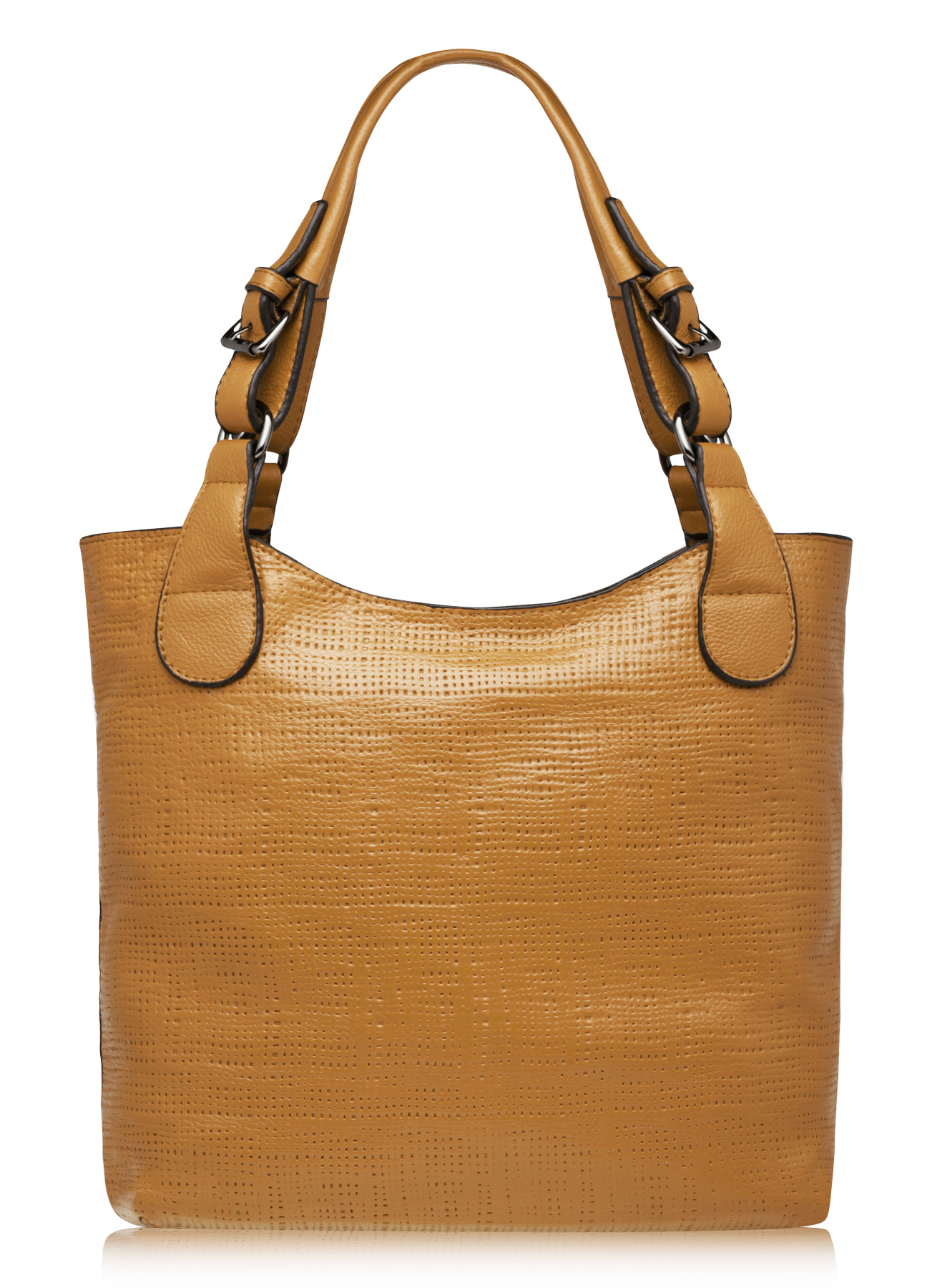 дизайн и эффектная фурнитура. Разъема ручек достаточно, чтобы легко носить эту модель на плече. Оригинальная фактура кожи.