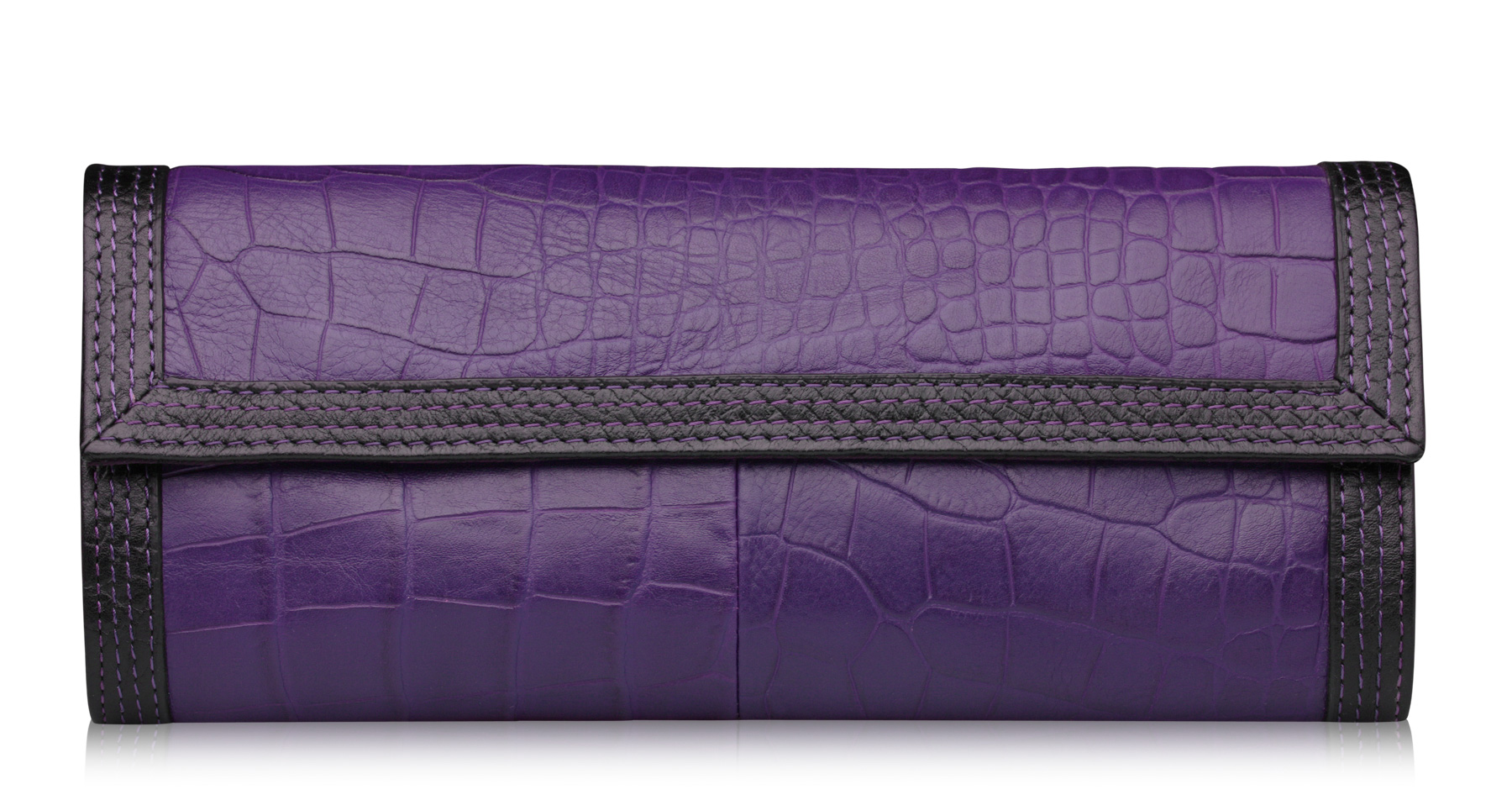 Эффектный клатч из натуральной кожи. У него идеальный размер, вмещает все необходимые мелочи, такие как телефон, кошелек, косметику, и при этом выглядит очень элегантно. Фактура кожи имитирует кожу крокодила.Есть маленький ремешок для запястья и длинный ремешок, чтобы носить сумочку через плечо.