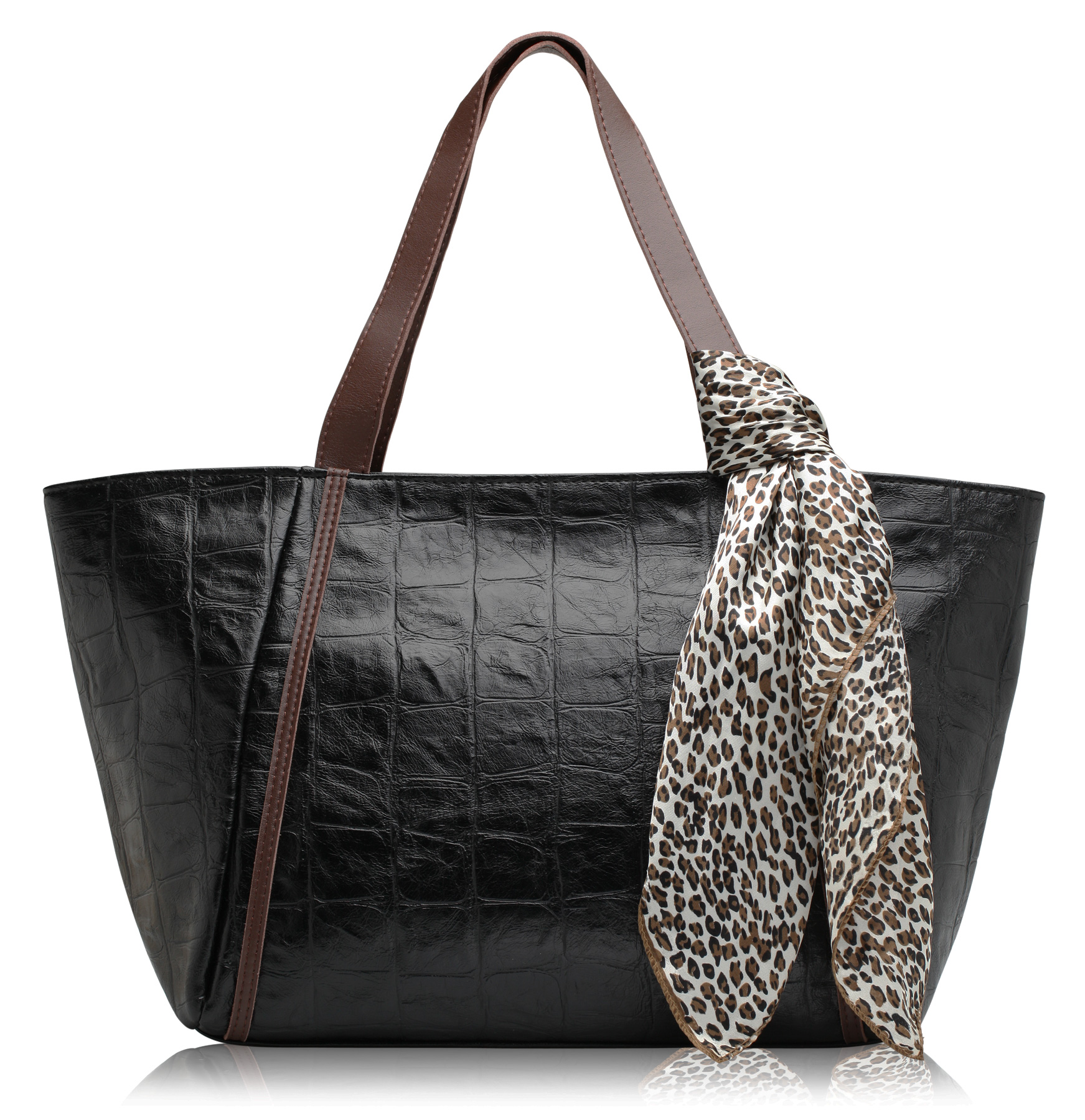 Очень легкая и удобная сумка на каждый день с фактурой, имитирующая кожу крокодила. Ручки сумки выполнены из натуральной кожи, что довольно практично и придает сумке шарма. Разъема ручек достаточно, чтобы носить сумку на плече.