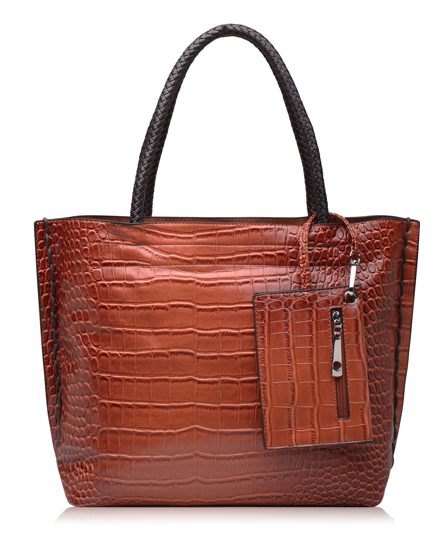 Очень красивая и практичная удобная сумка на каждый день с фактурой, имитирующая кожу крокодила. Сумка плотная, но не жесткая, держит форму даже в пустом виде. Фурнитура цвета серебра . Разъема ручек достаточно, чтобы носить сумку на плече, а размер сумки легко вмещает документы А4.