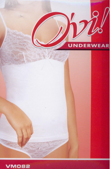 Майка женская хлопковая на тоненьких бретельках под руки. Область бюста состоит из полупрозрачной ткани, украшенной кружевом.