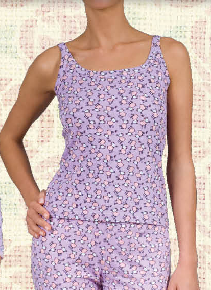 Майка на широких бретельках, хлопковая с разноцветной текстурой.