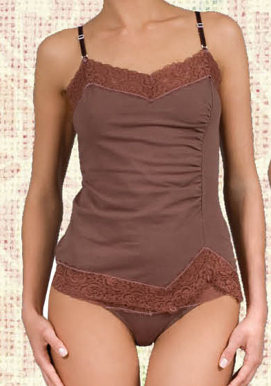 Майка на тонких бретельках, хлопковая. Декольте и низ майки выполнены из кружева в крупные цветы, красивый вырез снизу.
