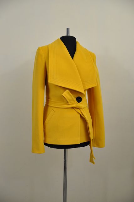 01-0662 Пальто женское демисезонное Кашемир Желтый