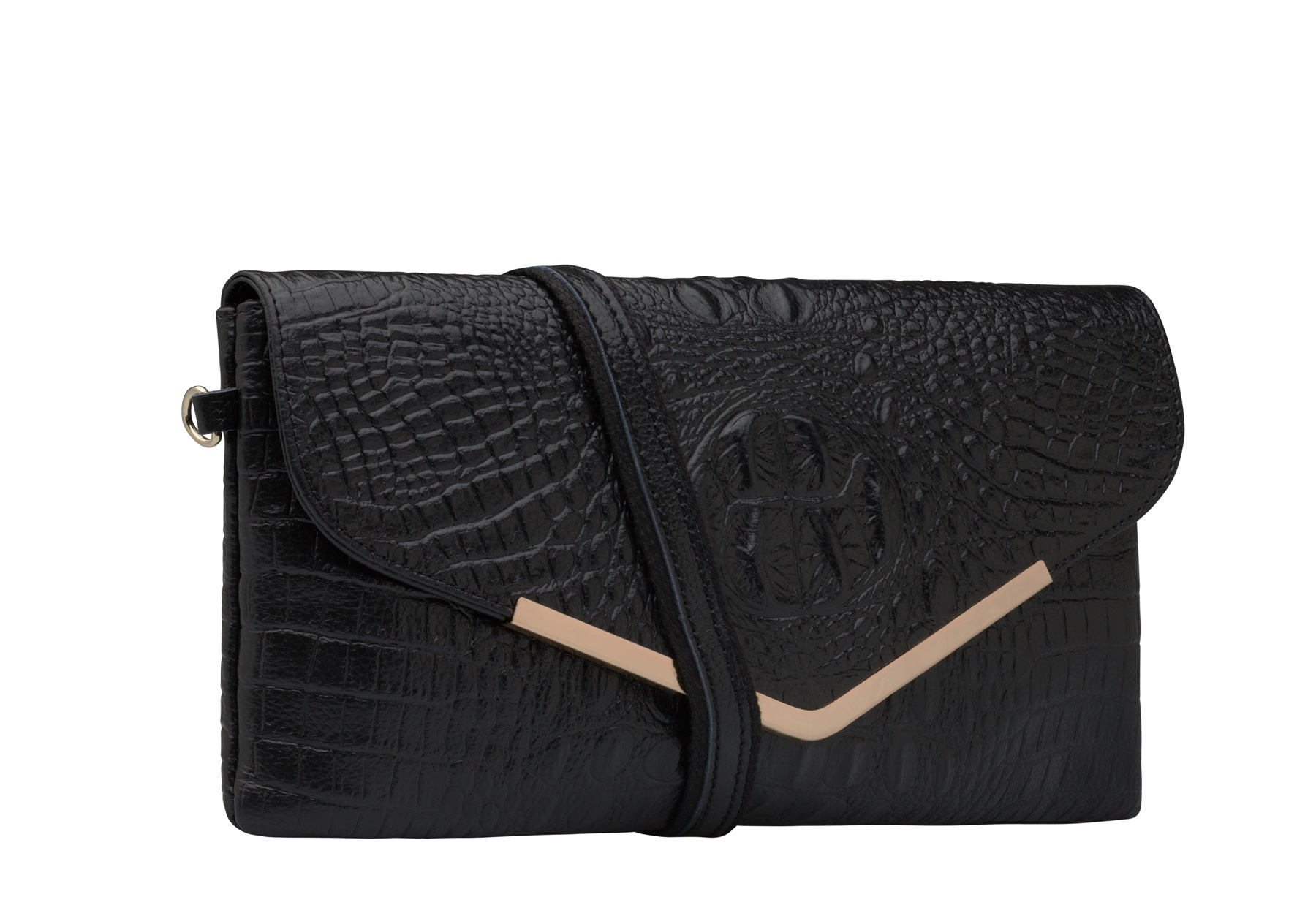 У клатча есть маленький ремешок на запястье и длинный ремень, чтобы носить сумочку через плечо.Внутри карман на молнии.