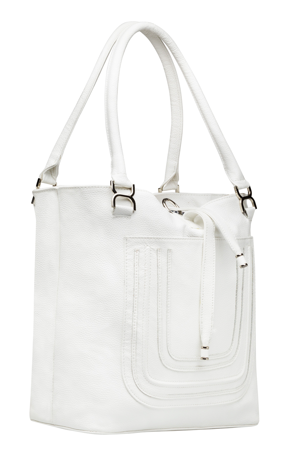 Сумка закрывается на молнию. Два отделения. 2 кармашка для мобильного и мелочей и карман на молнии. Подклад в полоску. Снаружи карман на молнии. Разъема ручек достаточно, чтобы носить сумку на плече.
