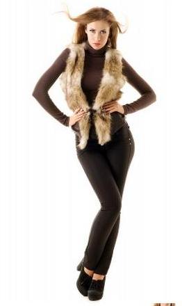 Стильная жилетка — это хит каждого сезона. Она универсальна к любому наряду. Данная модель выполнена из искусственного меха и кожзама. Впереди удобно завязывается шнурами с золотыми концовками, продетыми через золотые кольца.