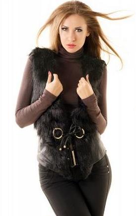 Стильная жилетка — это хит каждого сезона. Она универсальна к любому наряду. Данная модель выполнена из искусственного меха и кожзама. Впереди удобно завязывается шнурами с золотыми концовками, продетыми через золотые кольца.