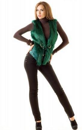Стильная жилетка — это хит каждого сезона. Она универсальна к любому наряду. Данная модель выполнена из искусственного меха и кожзама. Впереди удобно завязывается шнурами с золотыми концовками, продетыми через золотые кольца.