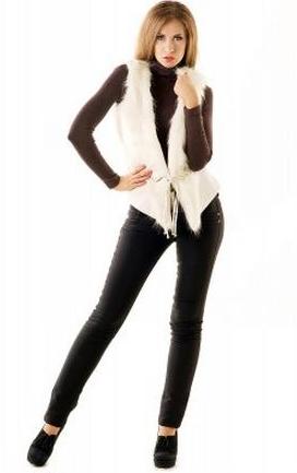 Стильная жилетка — это хит каждого сезона. Она универсальна к любому наряду. Данная модель выполнена из искусственного меха и кожзама. Впереди удобно завязывается шнурами с золотыми концовками, продетыми через золотые кольца.