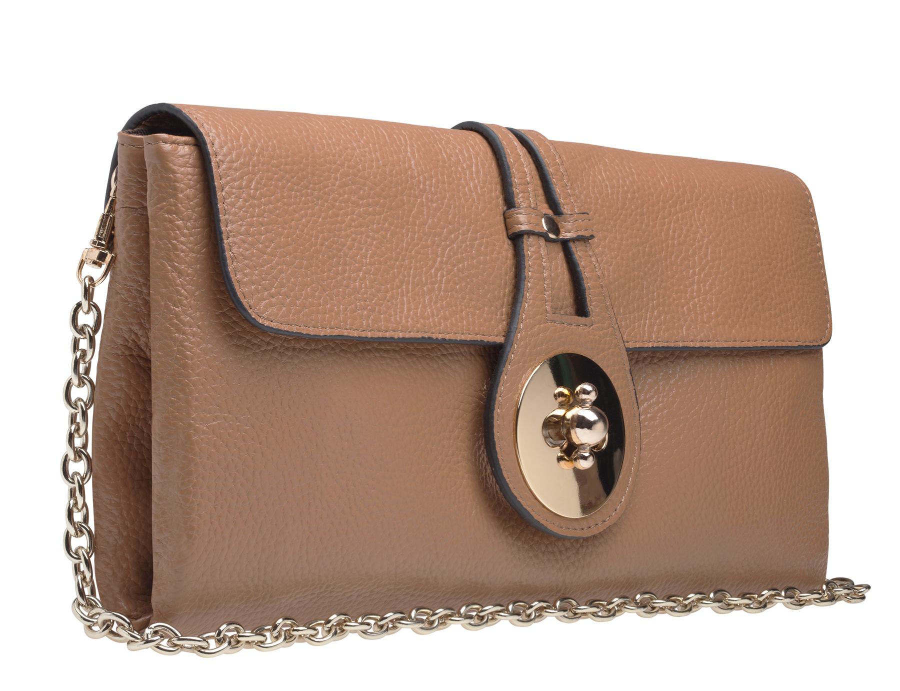 Большой мягкий кожаный клатч –это musthave для девушки, небезразличной к модным тенденциям. Он универсален: достаточно вместительный и выполняет все функции сумки, и в то же время не позволит носить с собой множество ненужных вещей. Многочисленные карманы и отделения помогут держать в порядке телефон, ключи и косметику. Большой плюс такого клатча в том, что он будет уместно смотреться днем и подойдет для вечернего выхода.У клатча есть кожаный ремешок на запястье и длинная металлическая цепочка.